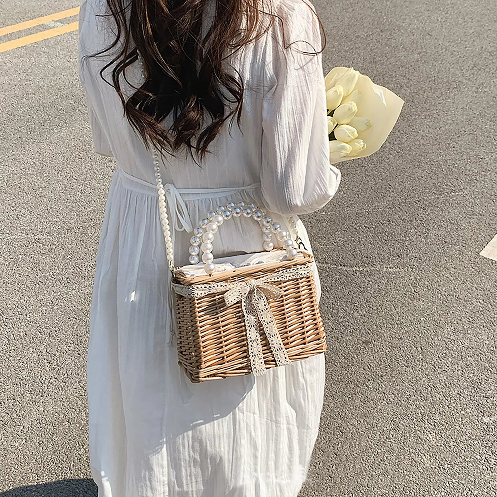Fashion gradient shoulder handheld straw bag large-capacity simple woven bag versatile seaside beach bag paper woven female bag.